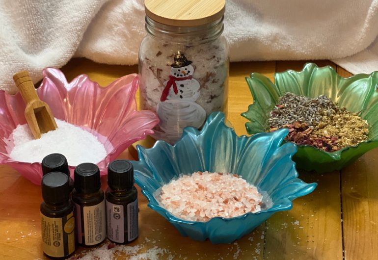 Then, you will fill your jars with bath salts! Customize your epsom salts with a variety of essential oils and dried flowers.